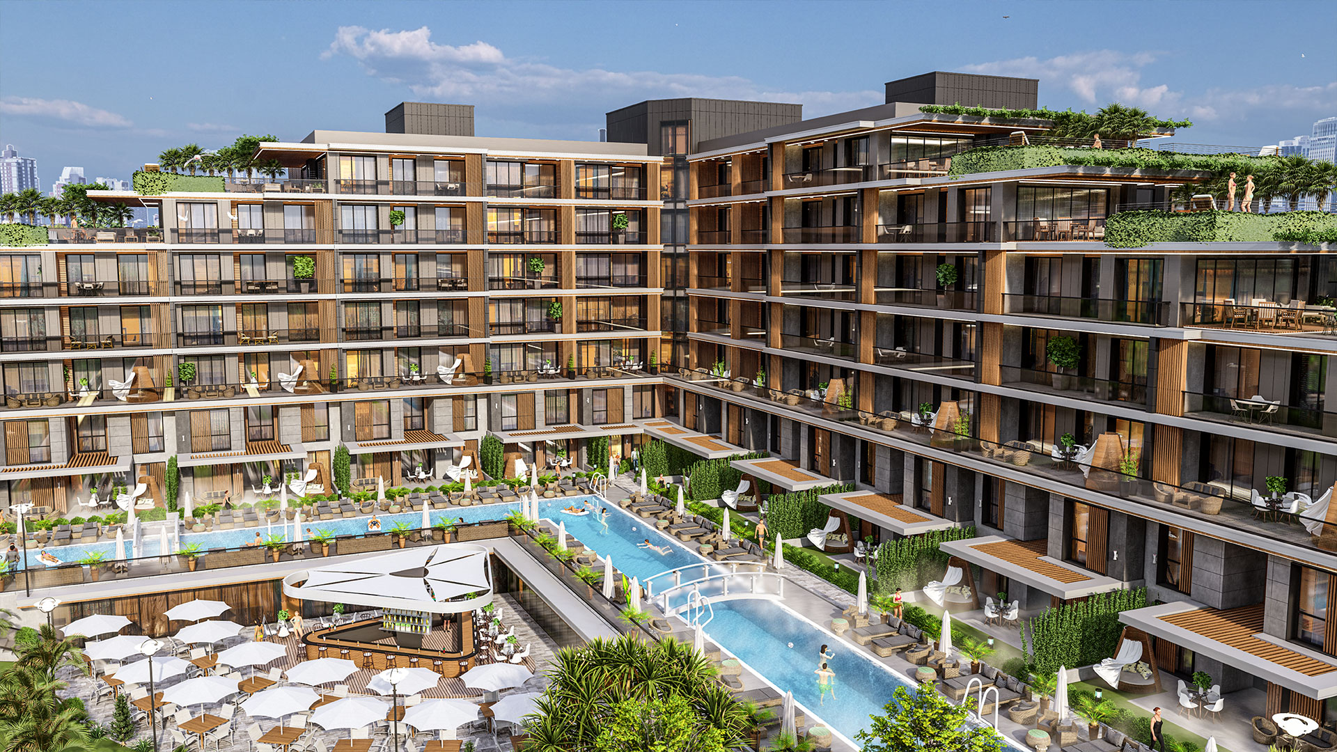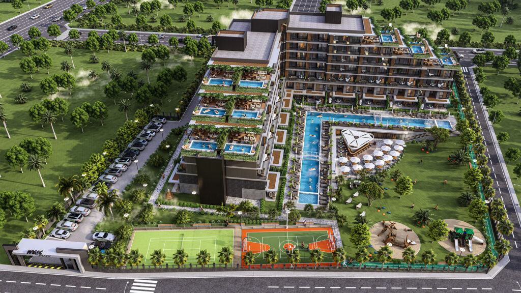 Sky Suite ligt op een toplocatie in Antalya, dicht bij de luchthaven en de Lara-stranden, en biedt luxe appartementen in hotelstijl. Het complex beschikt over open en gesloten zwembaden, sportvelden, een groene leefomgeving en moderne appartementen met 1 tot 3 kamers.